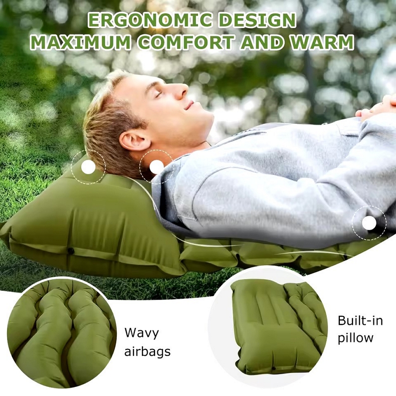 Outdoor Camping Inflatable Mattress Thicken Sleeping Pad with Built-in Pillow & Pump Air Mat for Travel Hiking Climbing